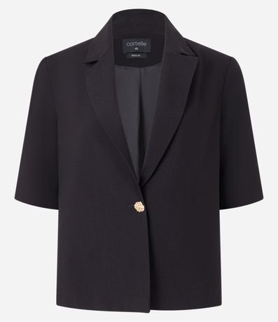 Ref: Blazer de mangas curtas, confeccionada em viscose, com lapelas na gola e botão único metalizado para fechamento. Este produto possui viscose certificada em sua composição, além de ter sido produzido através de processos mais sustentáveis com boas práticas ambientais, sendo ambientalmente mais responsável.
