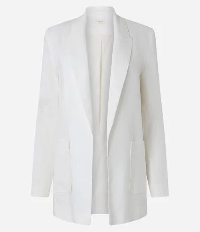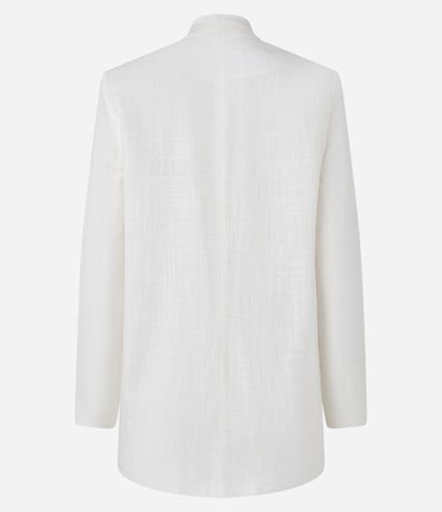 Ref: Blazer longo em viscolinho com lapelas no decote e mangas longas com bolsos frontais.