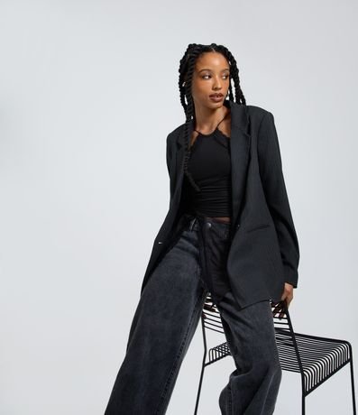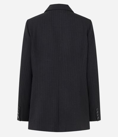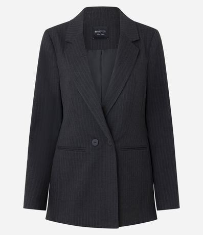 Ref: Blazer feminino confeccionado em viscose certificada. Possui modelo alongado, com lapela na gola e dois botões frontais para fechamento e listras verticais em estilo riscas de giz.