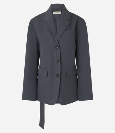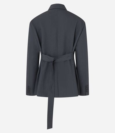 Blazer maxi oversized de estrutura alfaiatada, confeccionada em material reciclado, com lapelas removíveis na gola, ombreiras estruturadas, abotoamento frontal e amarração nas costas. Este produto possui material mais sustentável em sua composição, sendo ambientalmente mais responsável.