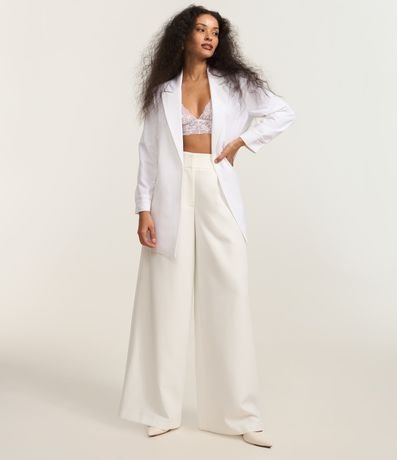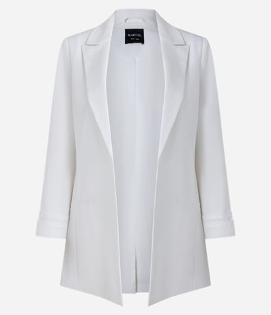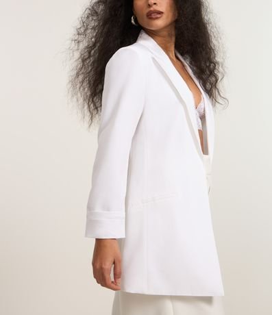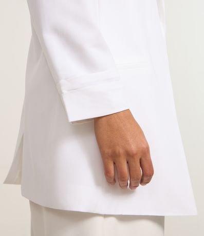 Blazer alongado com abertura total, confeccionado com viscose certificada mais sustentável e pregas nos punhos.