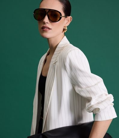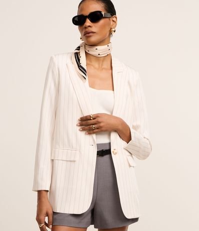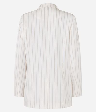 Ref: Blazer amplo col lapelas frontais, fechamento simples por abotoamento único, lapelas frontais que simulam bolsos e listras verticais. Este produto possui viscose certificada em sua composição, sendo ambientalmente mais responsável.