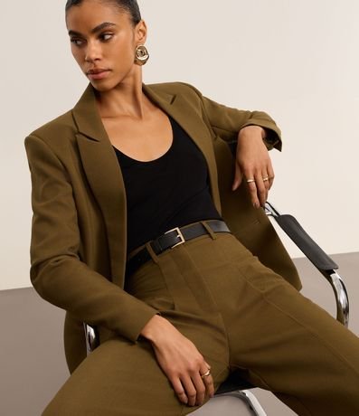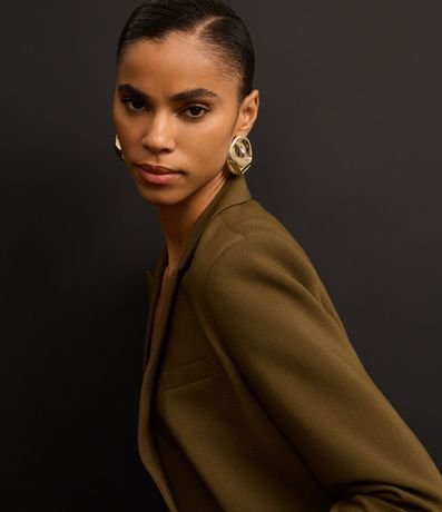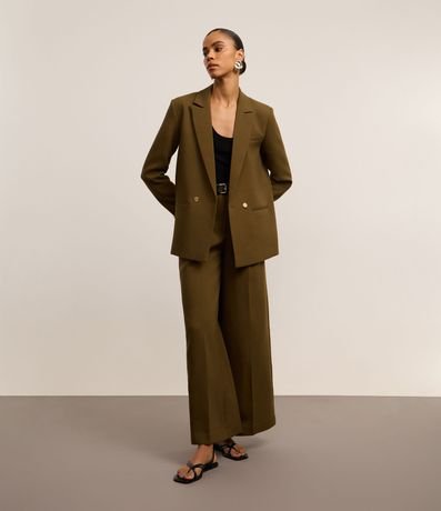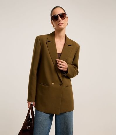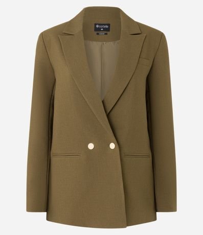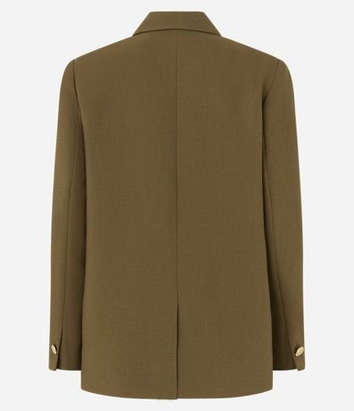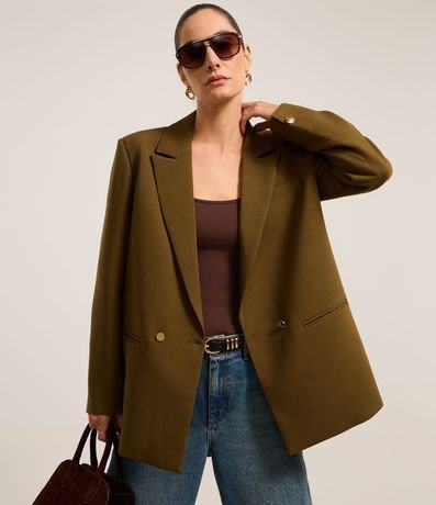 Ref: Blazer amplo com lapelas na gola, e transpasse com abotoamento frontal duplo, além de recortes que simulam bolsos. Este produto possui viscose certificada em sua composição, sendo ambientalmente mais responsável.