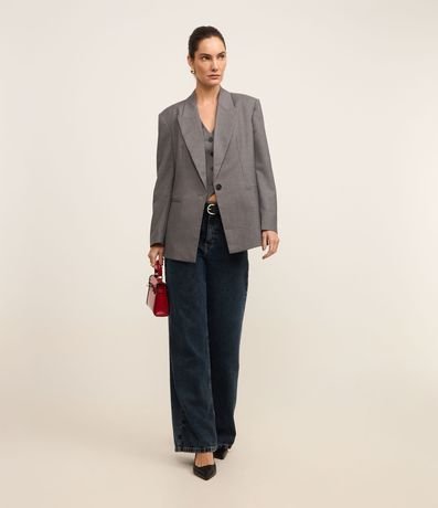 Blazer feminino em alfaiataria com viscose mais sustentável, gola lapela, manga longa, com bolso faca. Peça no modelo oversized com botão único.
