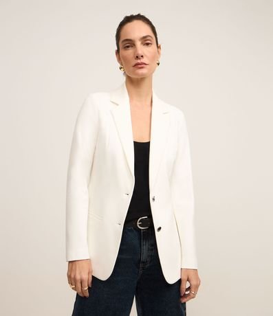Blazer Slim Alongado em Ponto Roma com Bolsos Embutidos