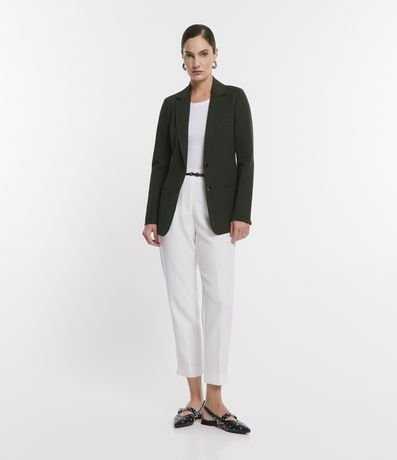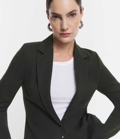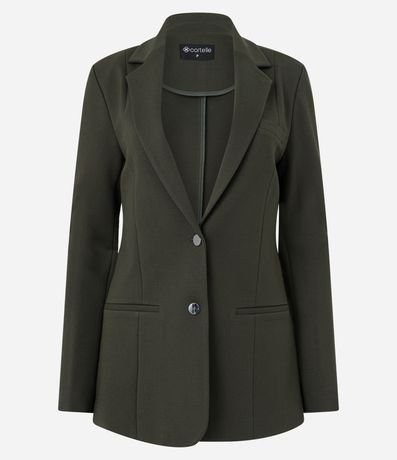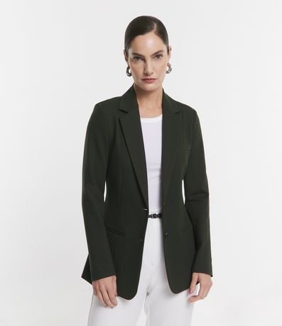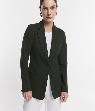 Ref: Blazer alongado slim, confeccionado em ponto roma, com decote V e bolsos embutidos. Possui fechamento frontal com abotoamento duplo.