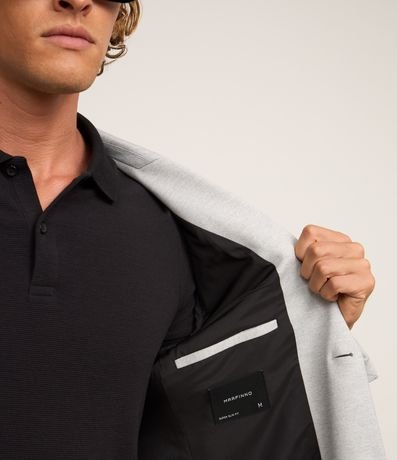 Blazer masculino confeccionado em material mais sustentável, gola em v com lapela, abotoamento duplo frontal, bolsos, com detalhe em recortes e sem forro. Peça com tecnologia Performance que permite secagem mais rápida e amasse menos.