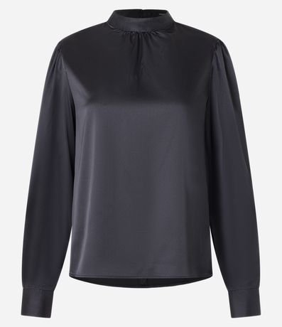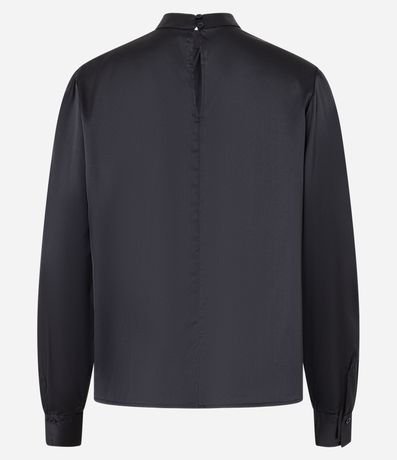 Ref: Blusa de mangas longas com botões nos punhos, confeccionada através de boas práticas ambientais, com gola padre com abertura vazada dianteira. Esta blusa é confeccionada com tecido todo em efeito acetinado.