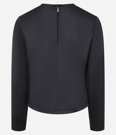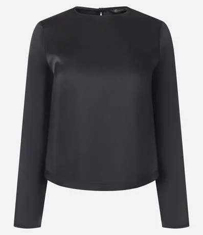 Ref: Blusa feminina acetinada com manga longa, modelagem reta e decote redondo e fechamento posterior por botão. O tecido leve e fluido garante caimento suave, ideal para compor looks formais ou casuais.