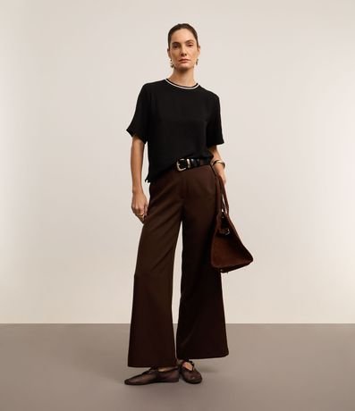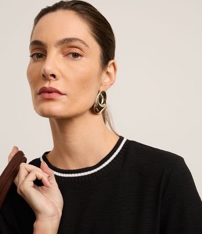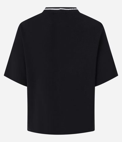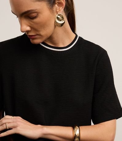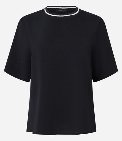 Ref: Blusa fliuda e soltinha com mangas curtas e gola em ribana contrastante.