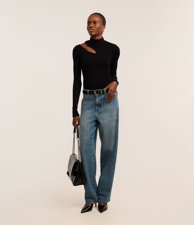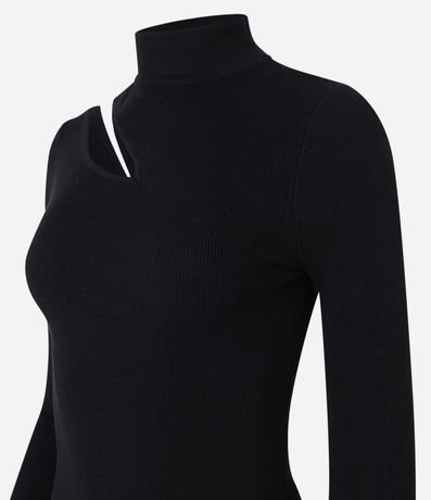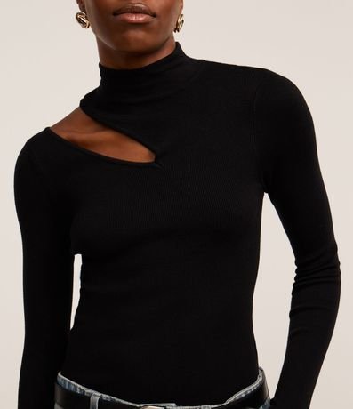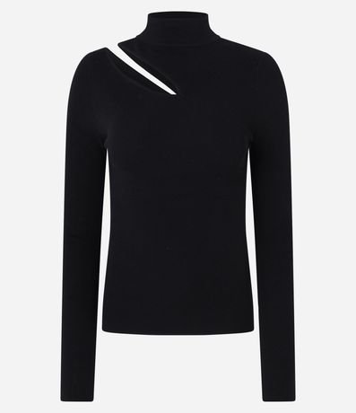 Ref: Blusa feminina confeccionada em tricô leve, com gola alta, mangas longas e sem estampa. Possui detalhe de abertura vazada no ombro.
