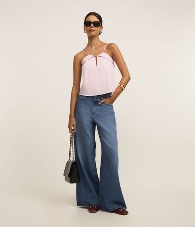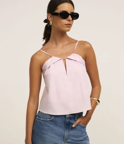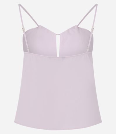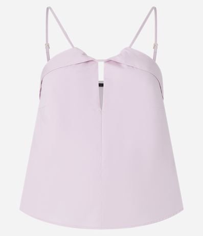 Ref: Blusa feminina em algodão mais sustentável, com alça fina, decote com pala e abertura.