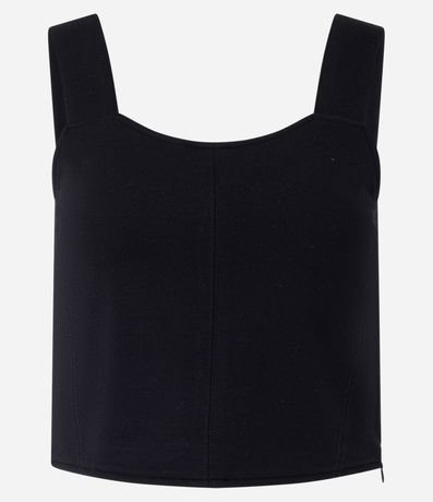Blusa Alça Larga Cropped em Viscose com Ponto Roma
