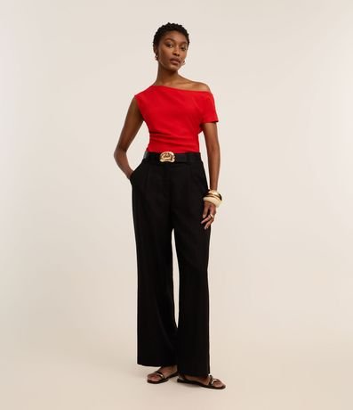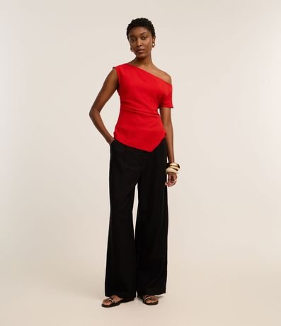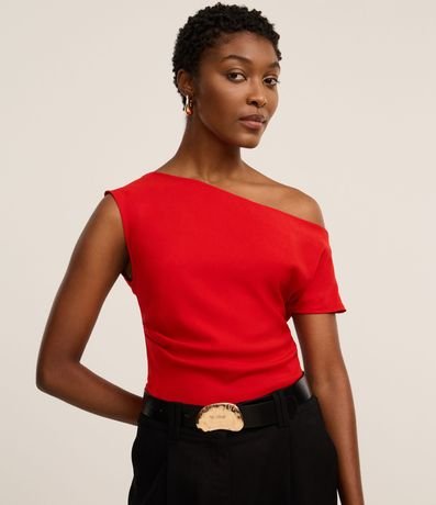 Ref: Blusa de manga curta exclusiva, confeccionada em tecido plano de corte alfaiatado, com decote ombro único. Este produto foi fabricado através de processos mais sustentáveis, adotando boas práticas ambientais.