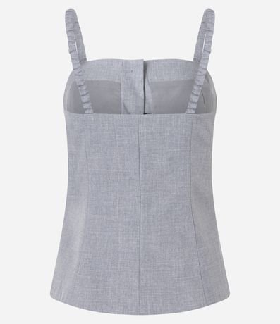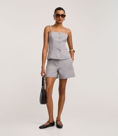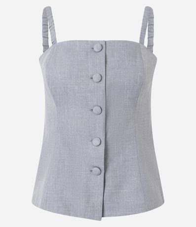 Ref: Blusa alfaiatada de alças finas com elásticos, confeccionada em tecido plano, com decote reto e botões forrados.