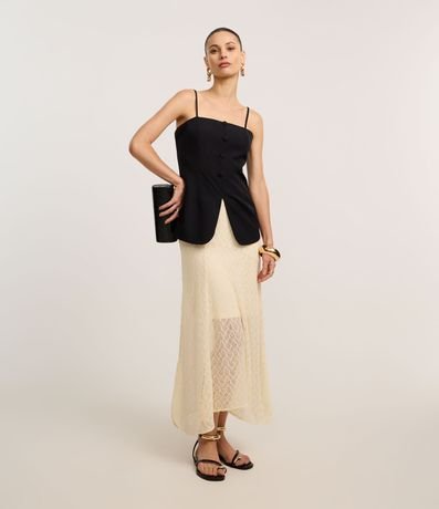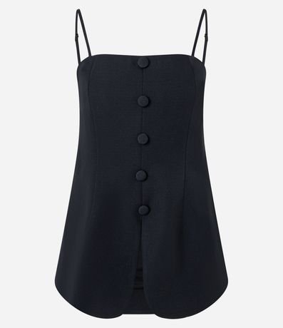 Blusa Alfaiatada de Alça com Decote Reto e Botões Forrados
