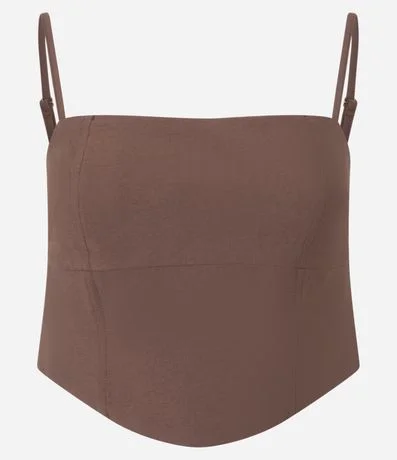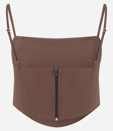 Ref: Blusa feminina de alfaiataria sem mangas confeccionada em viscose mais sustentável. Possui alças finas reguláveis e recortes estruturados que moldam o busto e fechamento em zíper nas costas.