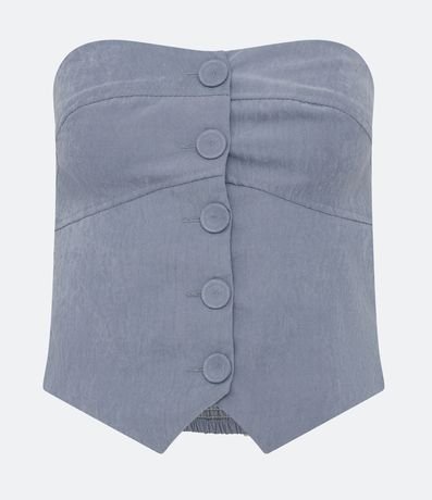 Ref: Blusa alfaiatada sem mangas em abotoamento frontal e lastex nas costas. Todo ápice fashion desta blusinha é conferido pelo decote tomara que caia além dos botões forrados.