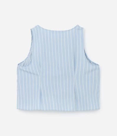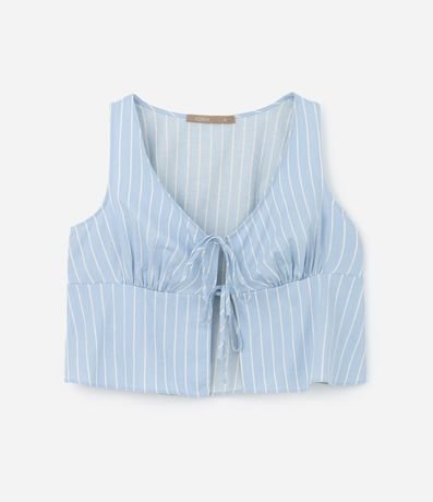 Blusa de algodão, estampada de listras verticais, sem mangas, com nozinhos e busto marcado