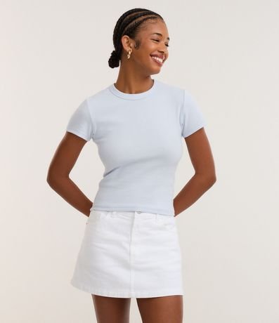 Blusa feminina confeccionada em ribana de algodão certificado bci com boas práticas ambientais, peça com gola redonda e manga curta.