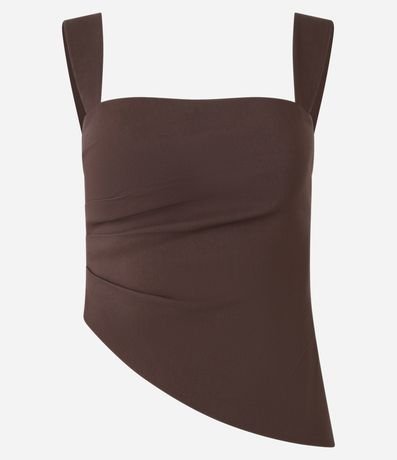 Blusa de alça larga, confeccionada em bengaline com viscose certifica mais sustentável, franzidinho na lateral e barra assimétrica.