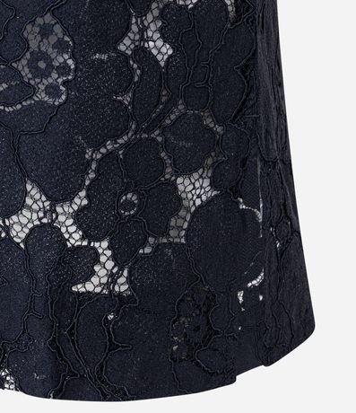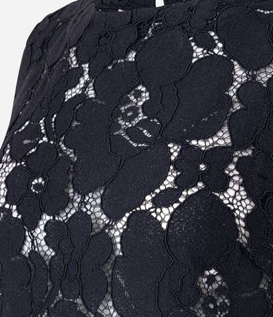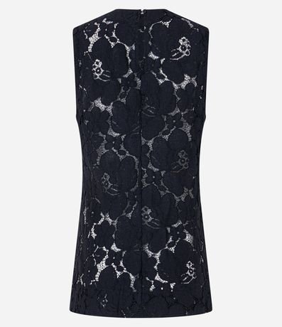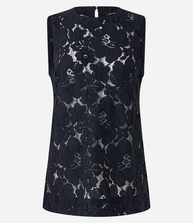 Ref: Blusa feminina de modelo alongada, confeccionada em renda floral, sem mangas.