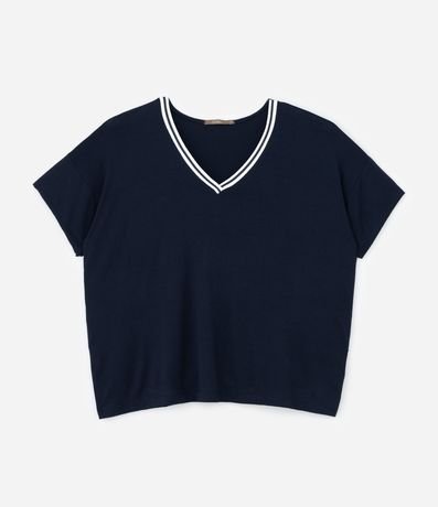 Ref: Blusa confeccionada em viscolycra mais sustentável através de boas práticas ambientais, no modelo alongado. Possui gola V, com acabamento retilínea e mangas curtas, ideal para compor looks casuais com estilo Curve & Plus Size.