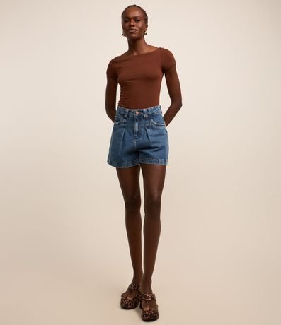 Blusa alongada com manga curta, confeccionada em viscose e com lindo decote canoa.