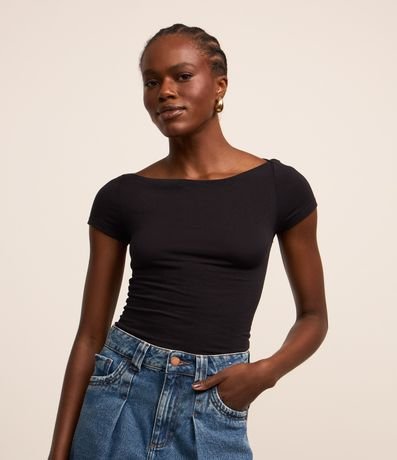 Ref: Blusa alongada com manga curta, confeccionada em viscose e com lindo decote canoa.