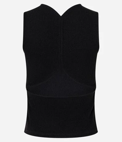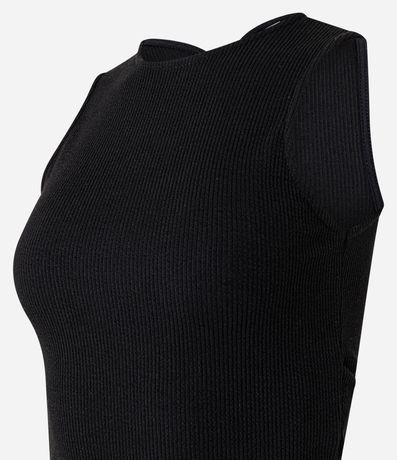 Ref: Blusa sem manga confeccionada em ana ruga, recorte vazado nas costas e sem estampa.