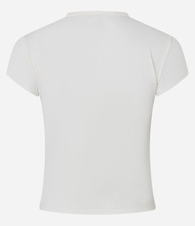 Ref: Blusa baby look em meia malha de algodão, com caimento ajustado que valoriza a silhueta. Possui lettering frontal em estampa localizada e gola redonda clássica.