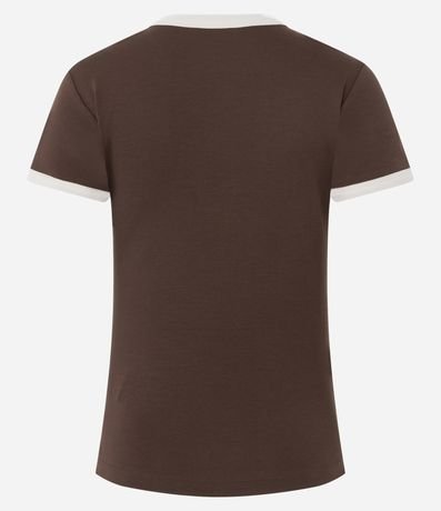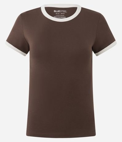 Ref: Blusa baby look com detalhes contrastantes na gola e nas mangas, trazendo um toque moderno ao visual básico. Modelagem confortável e versátil para o dia a dia, combinando facilmente com diferentes peças. Essencial para o guarda-roupa, confeccionado em algodão de certificado BCI.