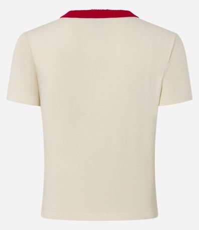 Ref: Baby look manga curta, confeccionada em algodão bci mais sustentável e produzida através de boas práticas ambientais. Possui gola contrastante e estampa frontal Cherry Bomb.