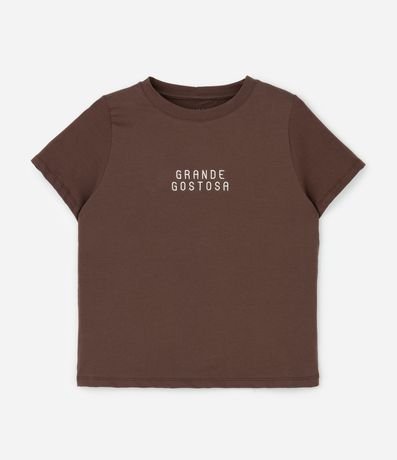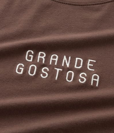 Ref: Blusa feminina confeccionada em cotton mais sustentável, no modelo baby look. Possui gola redonda, manga curta e bordado lettering "Grande gostosa".