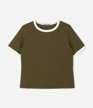 Ref: Blusa plus size de modelo babylook, confeccionada em malha ribana de algodão, com textura caneladinha e sem estampa. Possui acabamento contrastante na gola e mangas.