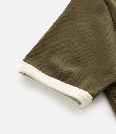 - Acabamento contrastante na gola e mangas