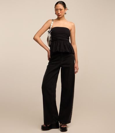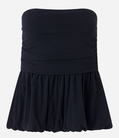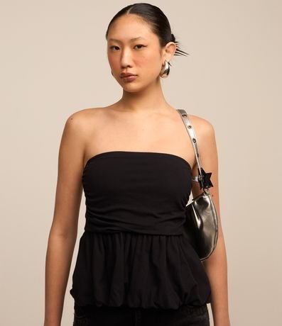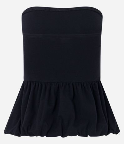 Ref: Blusa tomara que caia, confeccionada em algodão mais sustentável, decote tomara que caia e com babado na cintura.