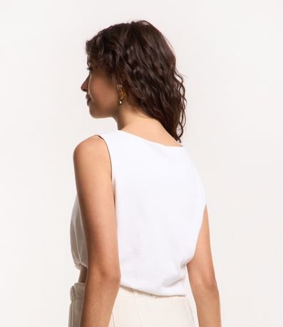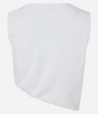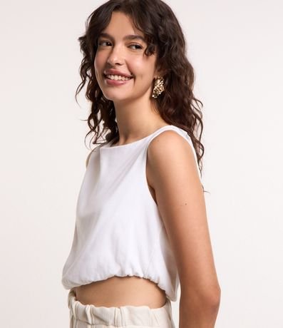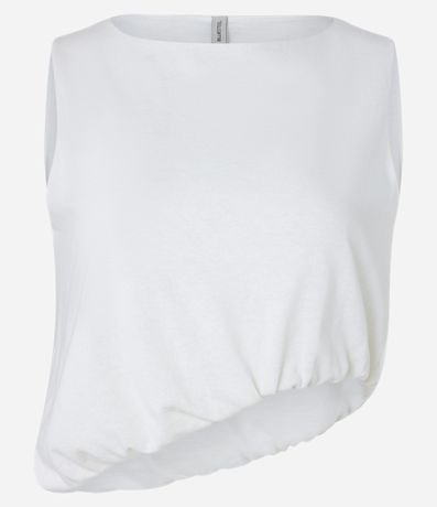 Blusa balonê, sem manga, confeccionada em algodão mais sustentável e barra assimétrica com frazido.