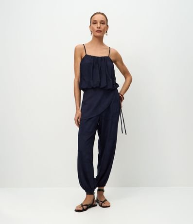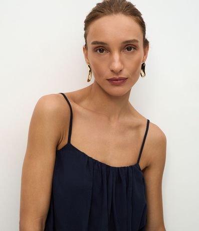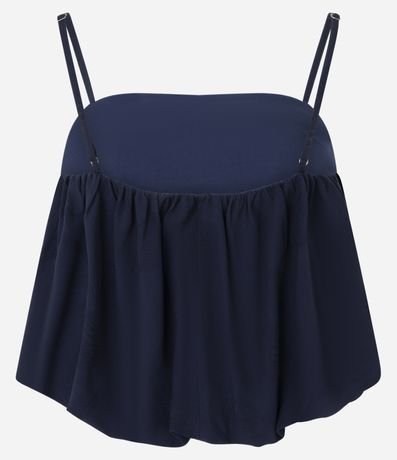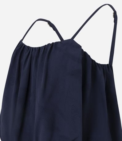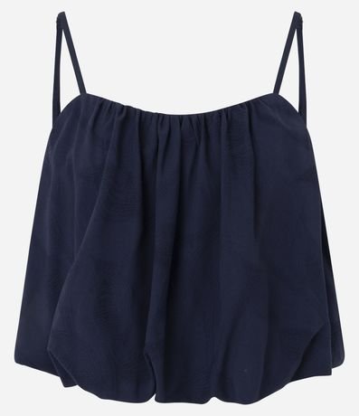 Ref: Blusa feminina sem manga confeccionada em jacquard com textura floral. Possui alças finas ajustáveis, modelagem balonê, com franzidos que criam volume suave.