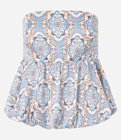 Blusa Balonê Tomara que Caia com Estampa Abstrata