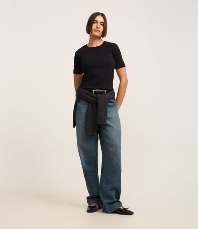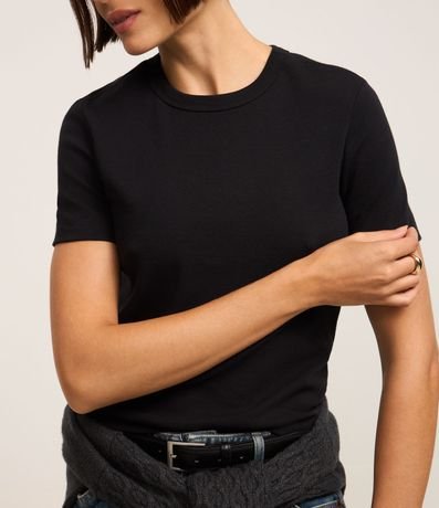 Ref: Blusa de modelagem mais ajustada e mangas curtas, confeccionada em ribana de algodão mais responsável através de boas práticas ambientais. Peça básica com gola redonda.