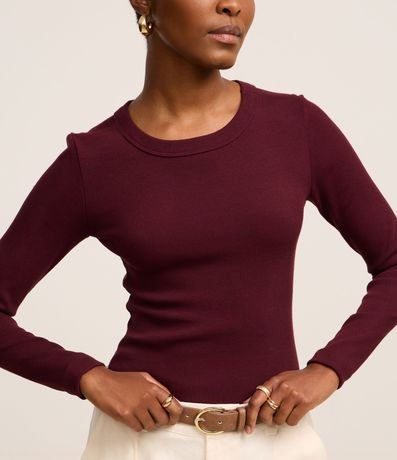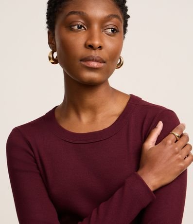 Ref: Blusa básica de mangas longas, confeccionada em ribana, com gola redonda e textura canelada. Este produto possui algodão certificado BCI em sua composição, além de ter sido produzido através de processos mais sustentáveis com boas práticas ambientais, sendo ambientalmente mais responsável.