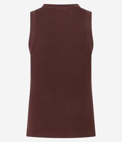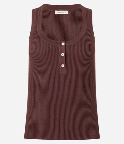 Blusa básica sem mangas, confeccionada em tricô, com decote U com botões. Peça com textura canelada. Este produto possui viscose certificada em sua composição, sendo ambientalmente mais responsável.