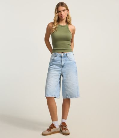 Ref: Blusa básica, sem manga, decote halter, com textura e sem costura.