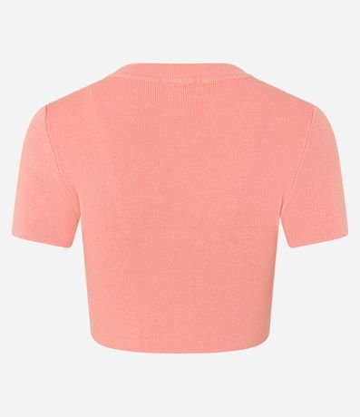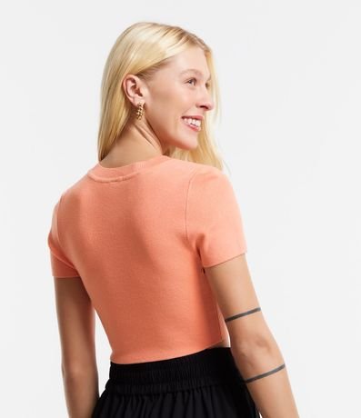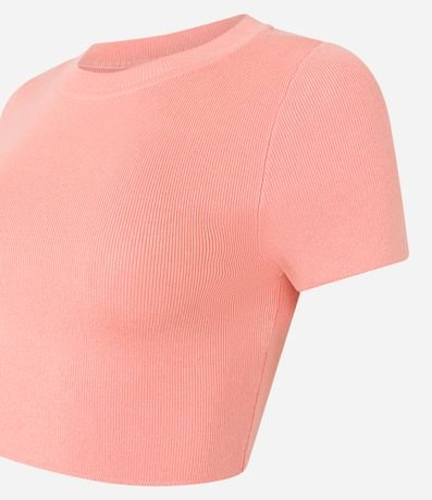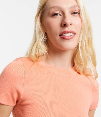 Blusa feminina básica, confeccionada em tricô de viscose, com gola redonda e mangas curtas. Possui texturinha canelada.
