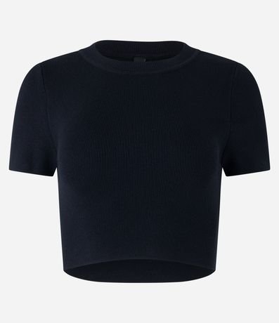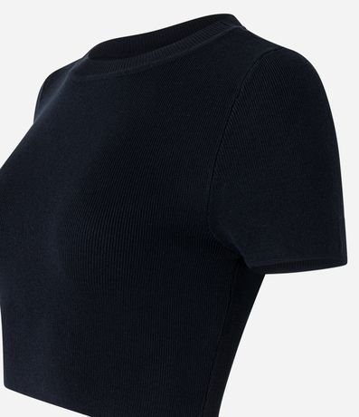 Blusa feminina básica, confeccionada em tricô de viscose, com gola redonda e mangas curtas. Possui texturinha canelada.