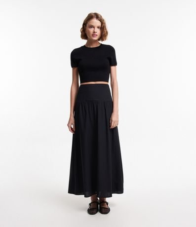 Blusa Básica Cropped Canelada em Viscose