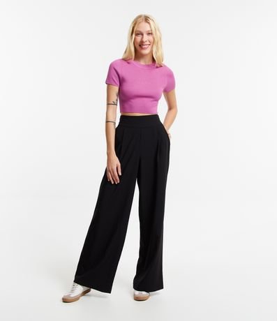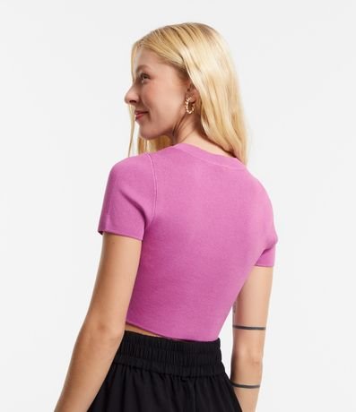 Ref: Blusa feminina básica, confeccionada em tricô de viscose, com gola redonda e mangas curtas. Possui texturinha canelada.