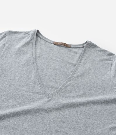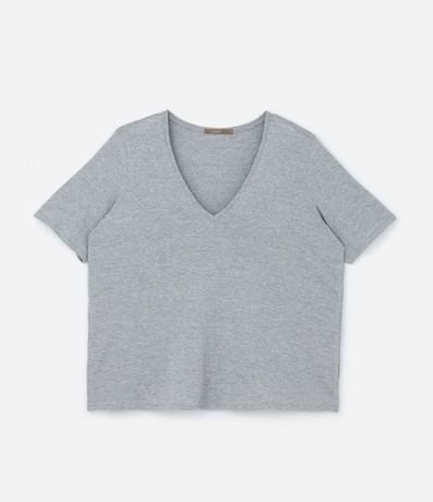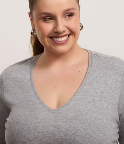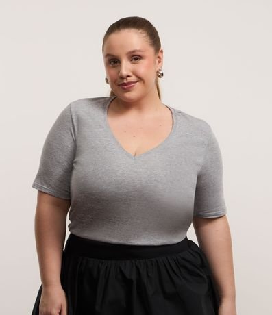 Ref: Blusa feminina Curve & Plus Size confeccionada em algodão mais sustentável com boas práticas ambientais em gola v com manga curta.