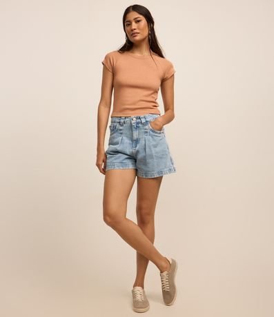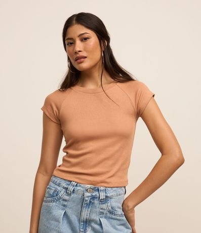 Ref: Blusa básica, confeccionada em ribana, leve textura e com manga curta raglan.